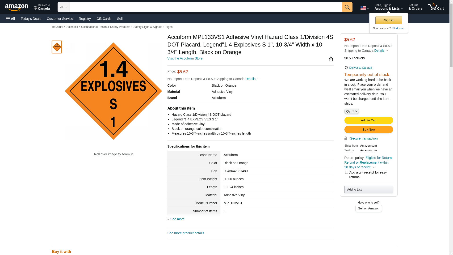 | Manufacturer | Accuform |