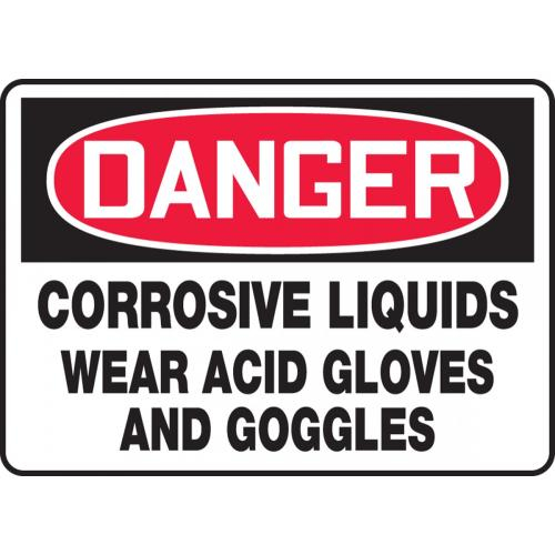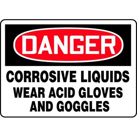 Accuform MCHL017VP Sign, Danger Corrosive Liquids WEAR Acid Gloves and Goggles", 7" Length x 10" Width x 0.055" Thickness, Plastic, 7" x 10", Red/Black on White