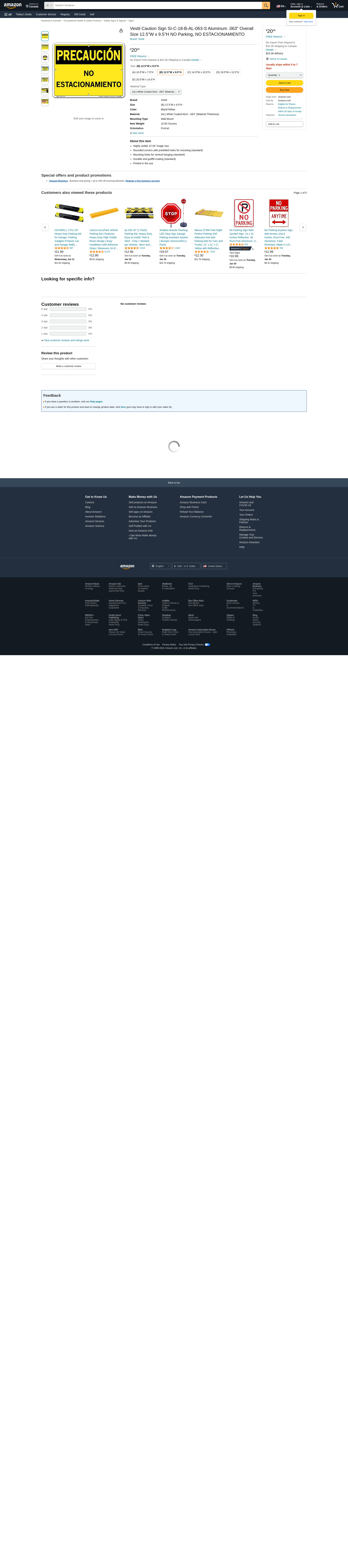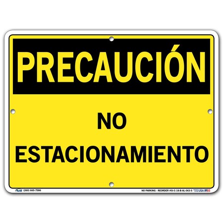 Vestil Caution Sign SI-C-18-B-AL-063-S Aluminum .063" Overall Size 12.5"W x 9.5"H NO Parking, NO ESTACIONAMIENTO