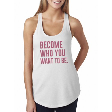 <ul> <li>Brand: Tee Bangers | Become Who You Want To Be Funny Inspirational</li> <li>White | 100% COTTON | Racerback Tank | </li> <li>Perfect for this spring season </li> </ul>