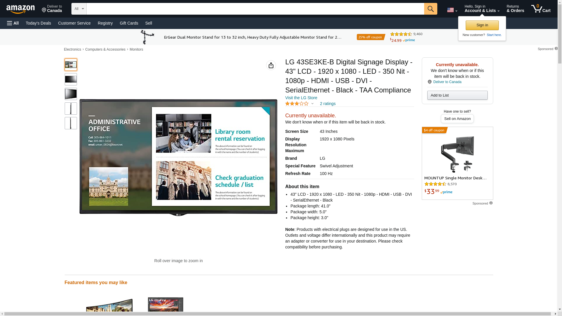 LG 43SE3KE-B Digital Signage Display - 43" LCD - 1920 x 1080 - LED - 350 Nit - 1080p - HDMI - USB - DVI - SerialEthernet - Black - TAA Compliance