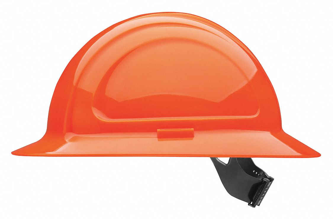 HARD HAT, HI-VIS, CSA TYPE 1/CLASS CGE, 4 POINT PINLOCK, FRONT BRIM, ORANGE, ONE SIZE, POLYETHYLENE