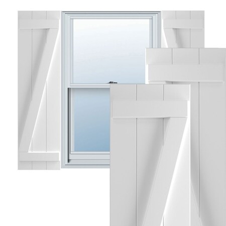 16 1/8"W x 44"H True Fit PVC Three Board Joined Board-n-Batten Shutters w/Z-Bar, White (Per Pair - Hardware Not Included)