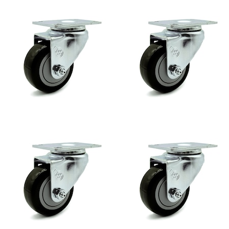 Swivel Caster Set of 4 with 3.5 Inch Black Polyurethane Wheel – 300 lbs. Capacity Per Caster – 3-1/8 Inch x 4-1/8 Inch Overall Top Plate – Service Caster Brand