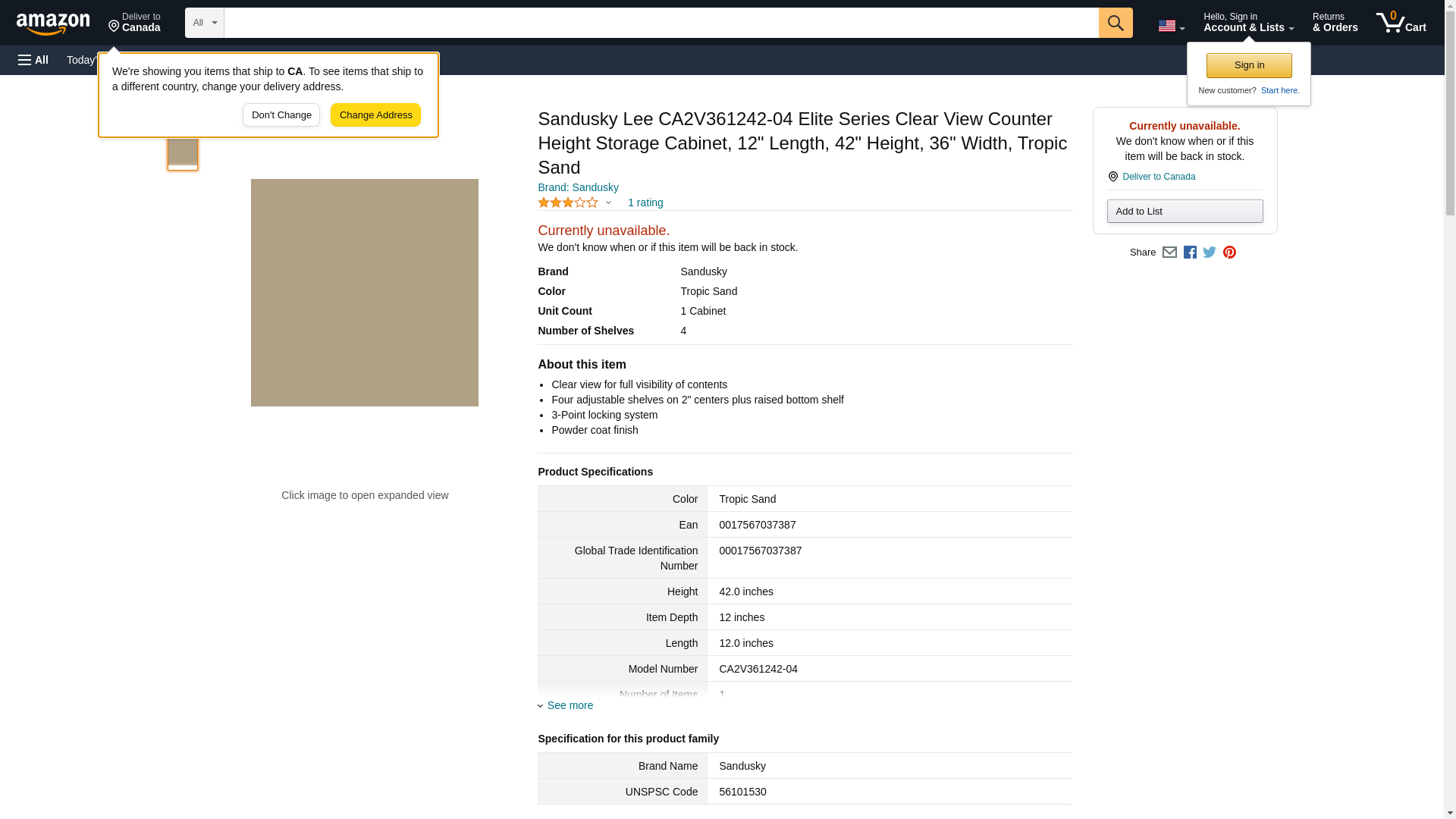 Sandusky Lee CA2V361242-04 Elite Series Clear View Counter Height Storage Cabinet, 12" Length, 42" Height, 36" Width, Tropic Sand