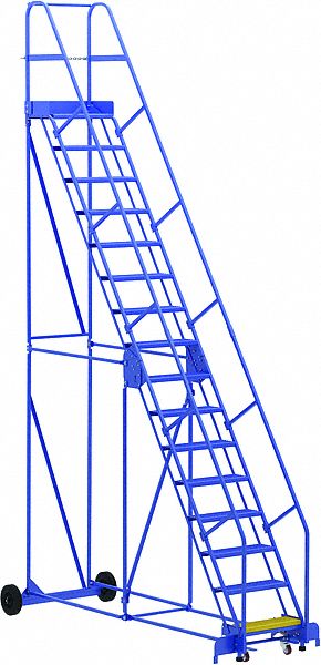Vestil LAD-16-14-P Warehouse Ladder, 58 Degree, Perforated, 16 Step, 14", Blue