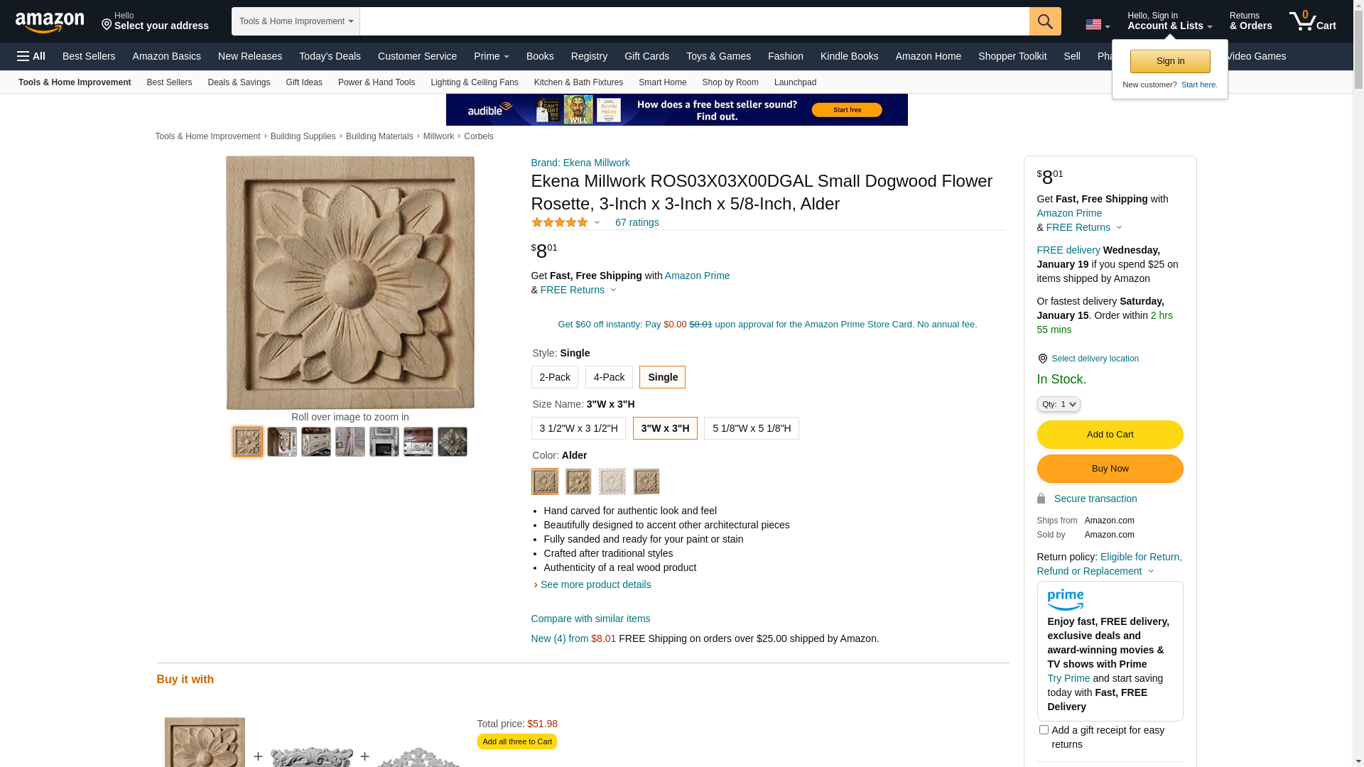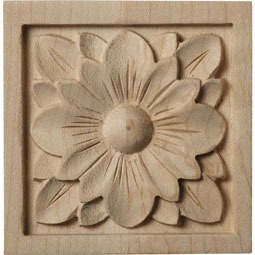 Ekena Millwork ROS03X03X00DGAL Small Dogwood Flower Square Rosette, 3"W x 3"H x 5/8"P, Alder