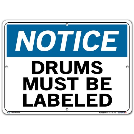 Vestil SI-N-63-C-AL-063 Notice Sign Aluminum .063" Overall Size 14.5"W x 10.5"H Drums Must Be Labeled , 10.5" Height, 14.5" Wide, 0.063" Length