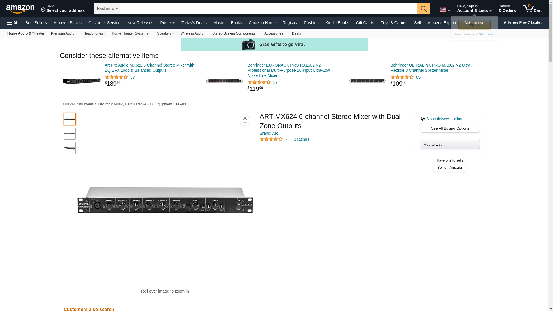 ART MX624 6-channel Stereo Mixer with Dual Zone Outputs