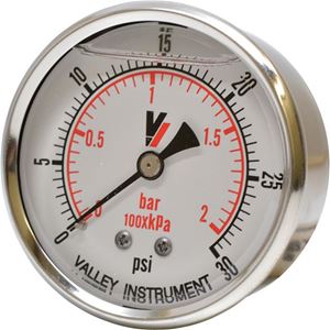 Valley Instrument Grade A Back Mount 2 1/2 Inch Glycerin Filled Gauge - 0-30 PSI