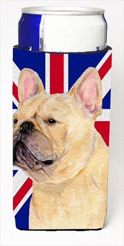 Caroline's Treasures SS4927MUK French Bulldog with English Union Jack British Flag Ultra Hugger for slim cans Can Cooler Sleeve Hugger Machine Washable Drink Sleeve Hugger Collapsible Insulator Bevera