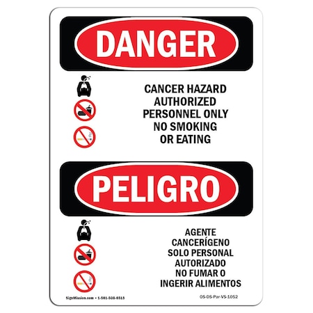 OSHA Danger, Cancer Hazard Authorized Personnel Bilingual, 24in X 18in Rigid Plastic