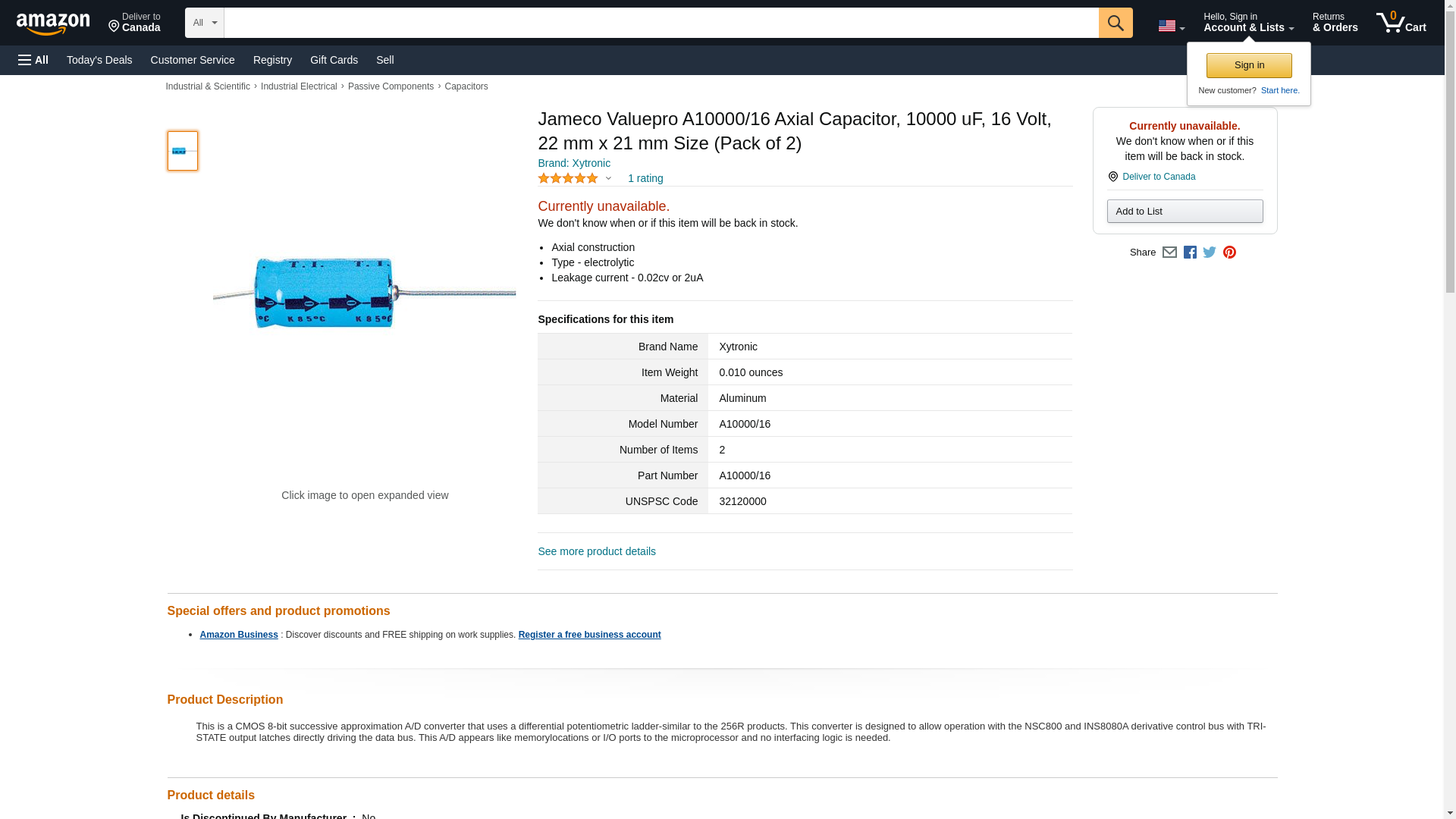 Electrolytic Capacitor 10000uF A10000/16 | Jameco Valuepro