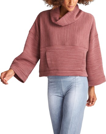 This elegant lucy Inner Journey pullover keeps you warm with its relaxed cowl neck and draping, bracelet-length sleeves. Its cropped length pairs well with high-rise jeans or leggings.
