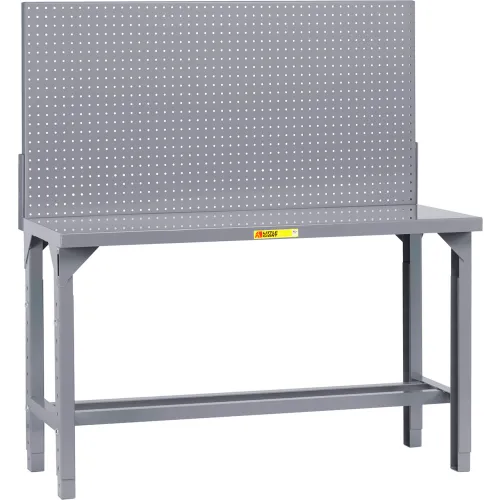 Little Giant WST1-2460-AH-PB Adjustable Height Welded Workbenches with Pegboard Panel, Open Base, 4500 lb. Capacity, 24" Depth x 60" Width, Gray