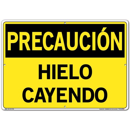 Vestil Caution Sign SI-C-52-E-AL-040-S Aluminum .040" Overall Size 20.5"W x 14.5"H Falling ICE, Hielo CAYENDO