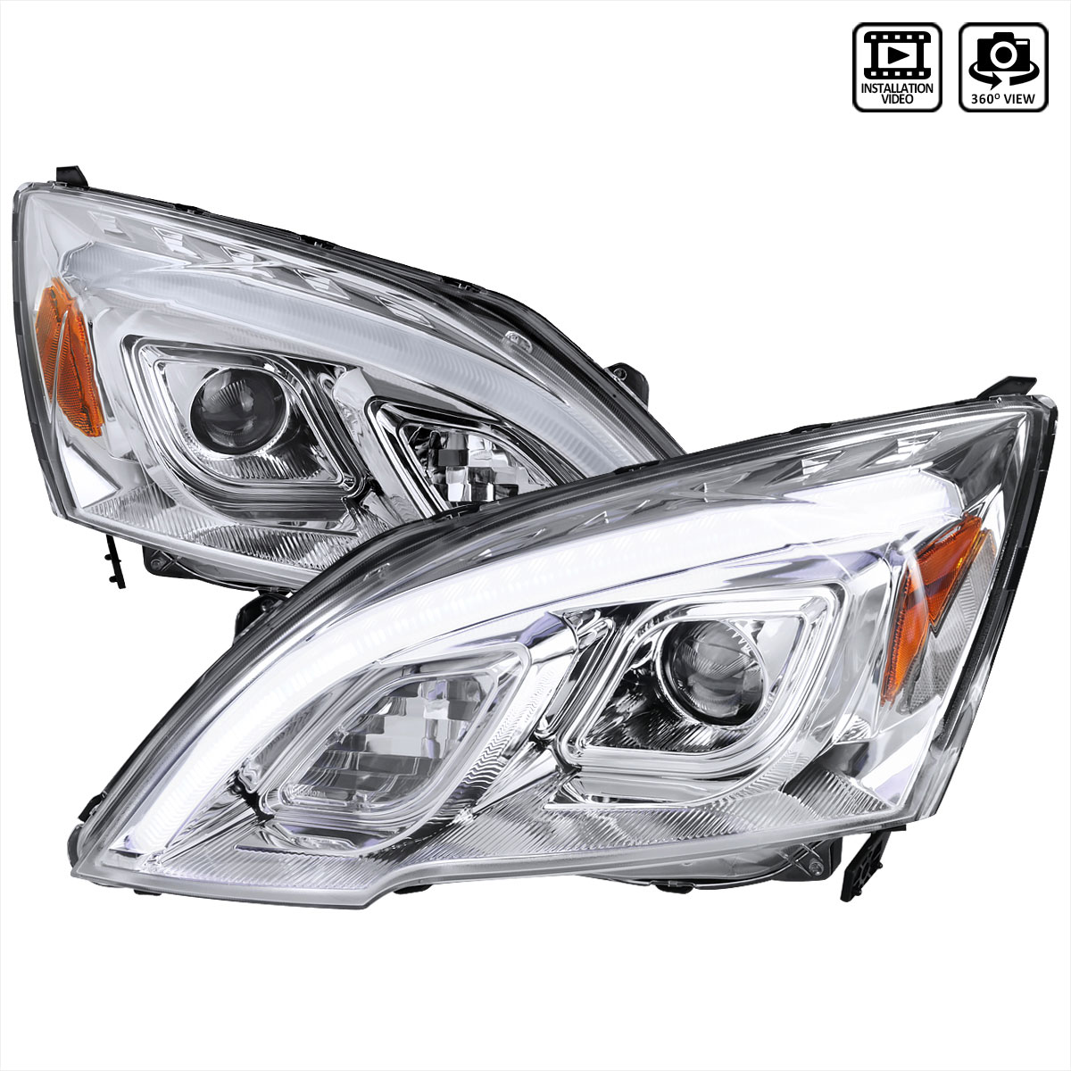 Spec-D Projector Headlights w/ LED Light Bars (Chrome Housing/Clear Lens) Honda CR-V 2007-2011 | 2LHP-CRV07-TM