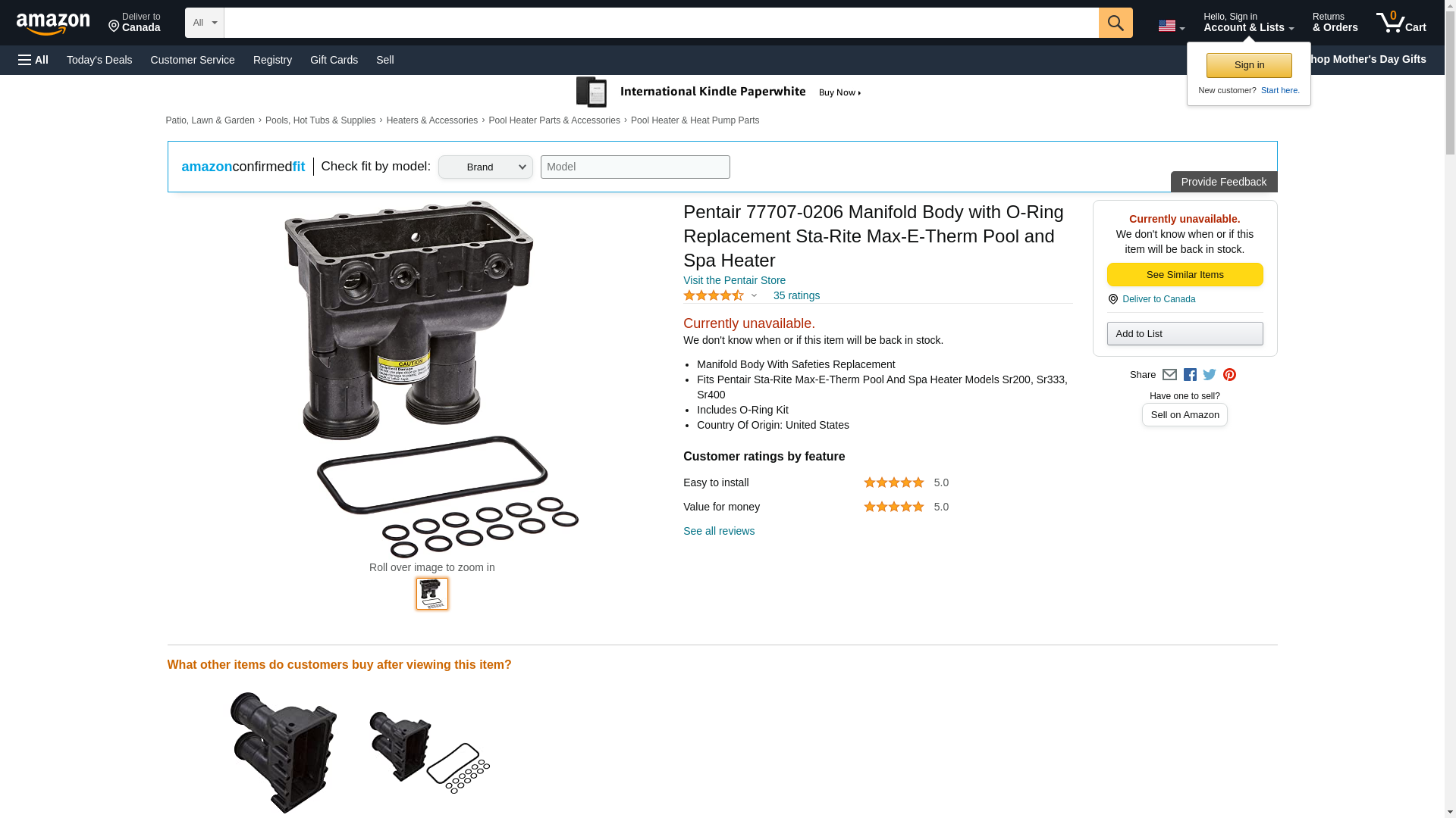 Pentair 77707-0206 Manifold Body with O-Ring Replacement Sta-Rite Max-E-Therm Pool and Spa Heater