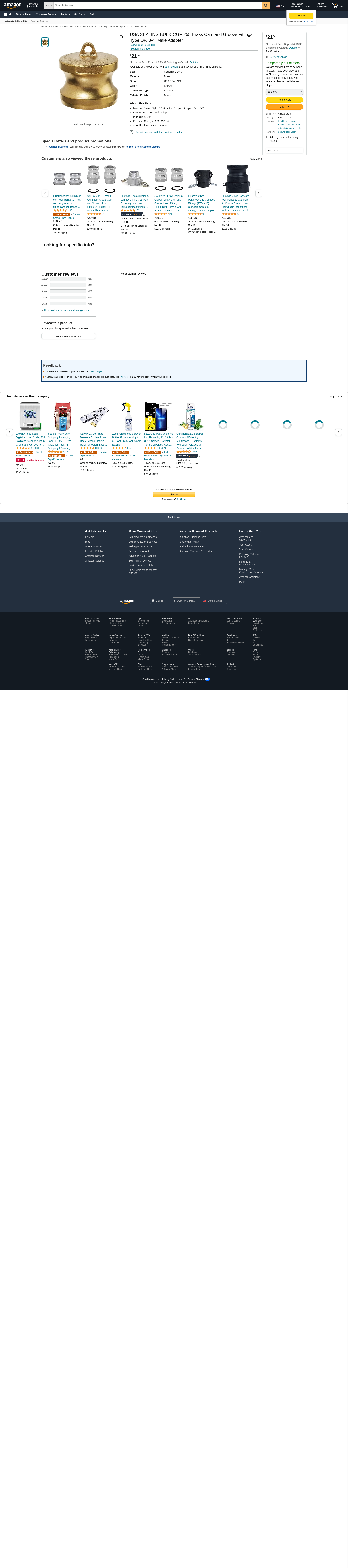 USA SEALING BULK-CGF-255 Brass Cam and Groove Fittings Type DP, 3/4" Male Adapter
