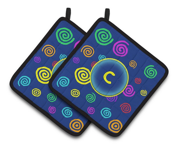 Carolines Treasures CJ1011-CPTHD Letter C Initial Monogram - Blue Swirls Pair of Pot Holders, 7.5 x 3 x 7.5 in.