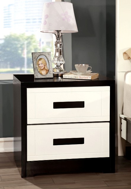 Furniture of America Farish Modern Two-Tone 2-Drawer Nightstand in Black & White - Enitial Lab IDF-7292N