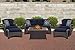 - DESIGNED FOR LIVING: This Strathmere Collection hand-woven wicker set includes 2 cushioned chairs with ottomans, cushioned loveseat couch, and wood grain tile-top propane gas powered fire pit table which heats up to a 15 ft. diameter. Fire pit uses 20 lb. propane gas tank - easy slide-out tank chamber fully concealed in base.