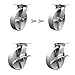 Heavy Duty Large Top Plate Semi Steel Cast Iron Swivel Caster w/Main. Free Bearings Set of 4 w/8" x 2" Silver Wheels-Includes 2 Swivel with Bolt on Swivel Lcks&2 Swvl with Brakes- Service Caster Brand