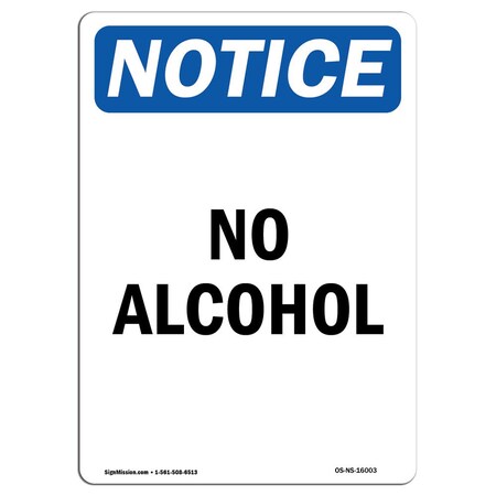 OSHA Notice Sign, NOTICE No Alcohol, 24in X 18in Rigid Plastic