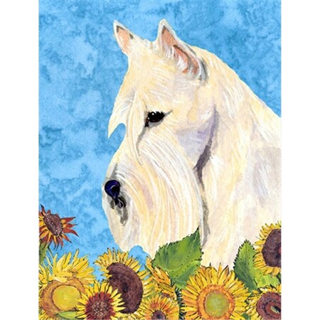 Caroline's Treasures SS4164CHF Scottish Terrier in Summer Flowers House Flag Large Porch Sleeve Pole Decorative Outside Yard Banner Artwork Wall Hanging, Polyester, House Size, Multicolor