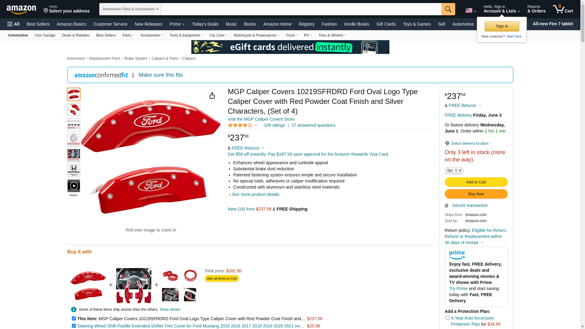 ![]() automotivestuff.com | MGP-10219SFRDRD | 1 | -2 | 1 | 1 @ $299.00 |