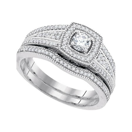 10k White Gold Womens Round Diamond Bridal Wedding Engagement Ring Band Set 1/2 Cttw