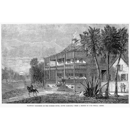 Stretched Canvas Art - South Carolina: Plantation. /N'Planter'S Residence On The Cumbee River, South Carolina.' Wood Engraving, American, Mid-19Th Century. - Medium 18 x 24 inch Wall Art Decor Size.