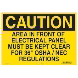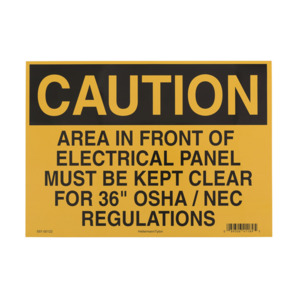 HellermannTyton - 597-00121 - Caution Sign 7x10in Area in Frt of Electrical Pnl Must Be Clear Vinyl Yell