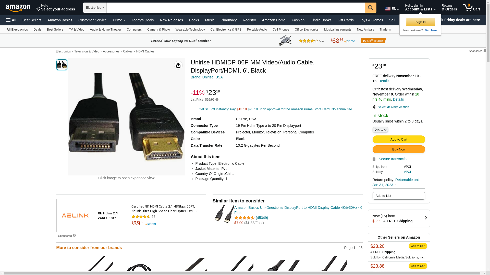 | Feature | Cable Length:6 ft |