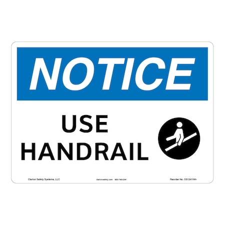 Notice/Use Handrail Sign (OS1241NH-)|Weatherable Polyester 12" X 18" Self Adhesive |OSHA Signs|Sign for Business, Retail, Workplace, Restaurant, Medical Facility
