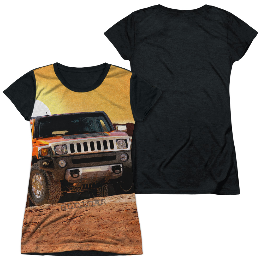 Trevco HMR105-JSBB-1 Hummer & Sunset Ride Junior Cap Sleeve Polyster Black Back T-Shirt, White - Small