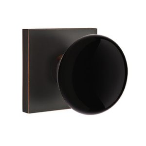 Porcelain Door Hardware Collection - Passage Ebony Knob With Modern Square Rosette in Oil Rubbed Bronze by Emtek Hardware - 5110EBUS10B-234 | MyKnobs
