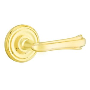 Brass Designer Levers Collection - Half Dummy Right Handed Wembley Lever With Regular Rose in Unlacquered Brass by Emtek - 8050WM.HALF.US3NLRH | MyKnobs