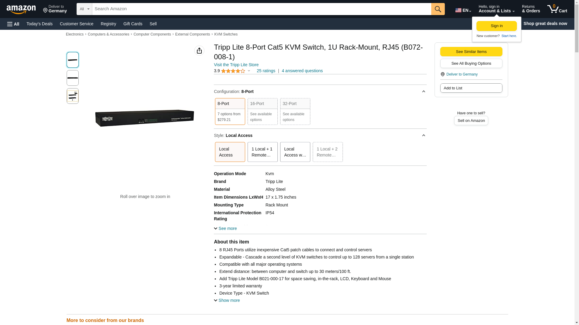 | Feature | Networking Type: KVM switch - CAT5 - cascadable| Device Type: KVM Switch| Form Factor: External| Connectivity Technology: Wired| Networking / Ports Qty: 8| Interfaces: RJ-11; RJ-45| Connections: 1 x mouse - generic - 6 pin mini-DIN (PS/2 style) ; 1 x keyboard - generic - 6 pin mini-DIN (PS/2 style) ; 1 x display / video - VGA - 15 pin HD D-Sub (HD-15)| Users Qty: 1 local user| Width: 17.00 Inch| Depth: 5.00 Inch| Height: 1.70 Inch| Service & Support Type: 1 year warranty |