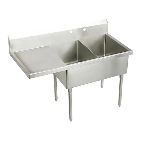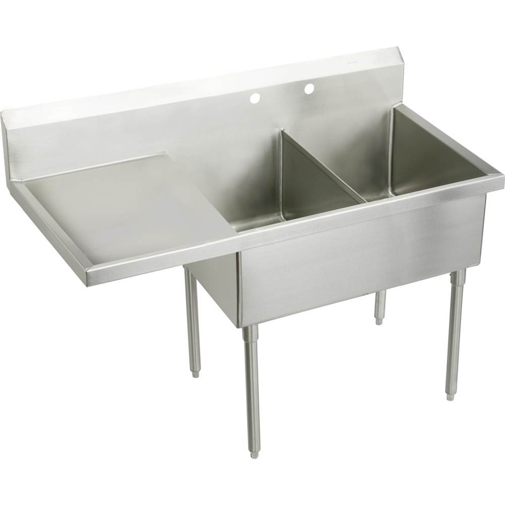 Elkay WNSF8254L2 Weldbilt Scullery Sink, Double Compartment with Left Drainboard, 79 1/2" W x 27 1/2" H