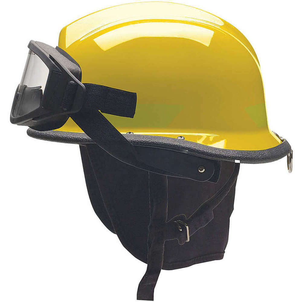 'Fire Helmet, Modern, Yellow, Ultem(R) Shell Material, Fits Hat Size 6-1/2 to 8, Quick Release 3-Point Chin Strap, Standard Sure-Lock(R) Ratchet Headband Suspension, Includes Fire Pro Goggle, Standards NFPA 1951-2013 and NFPA 1971-2013'