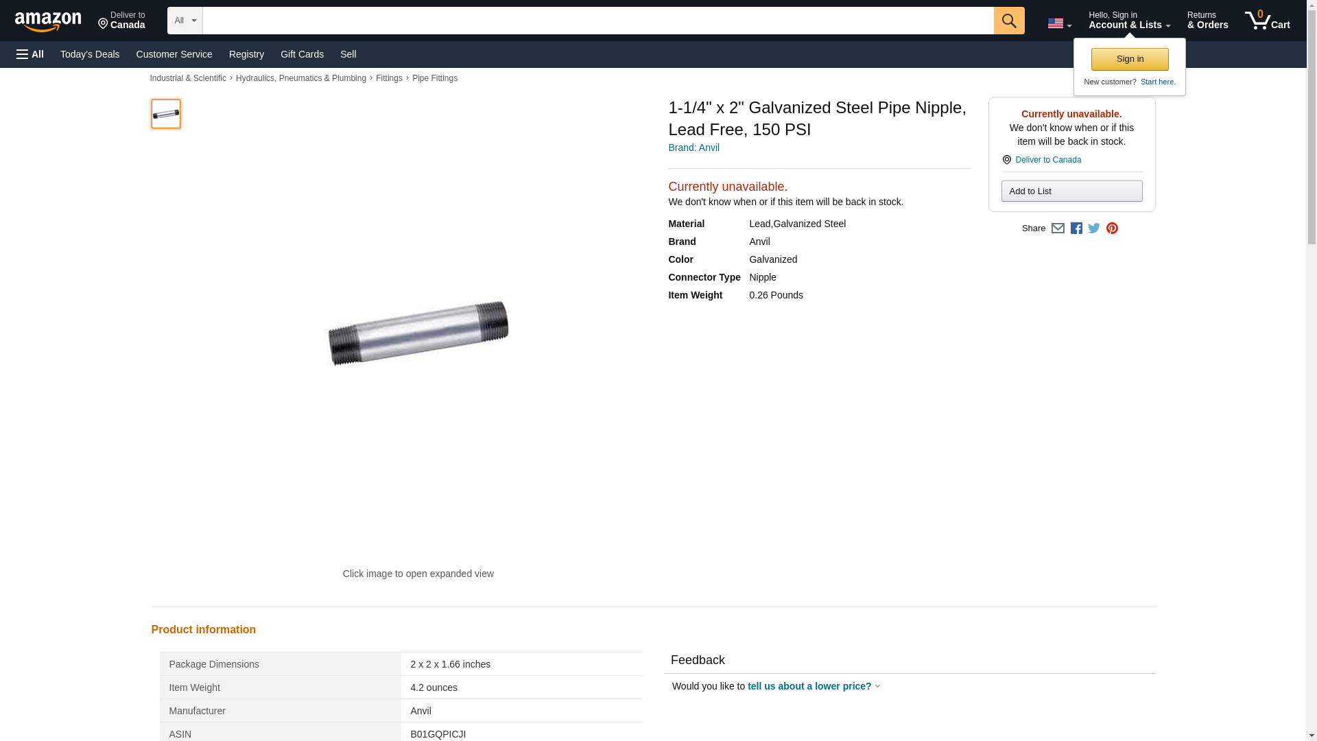 1-1/4" X 2" Galvanized Steel Pipe Nipple 150 PSI Lead Free **This product is prohibited from shipping to California.**, Lot of 1