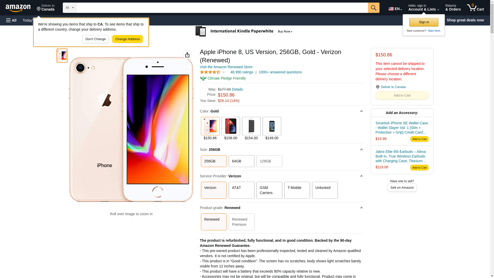 Apple iPhone 8, US Version, 256GB, Gold - Verizon (Renewed)
