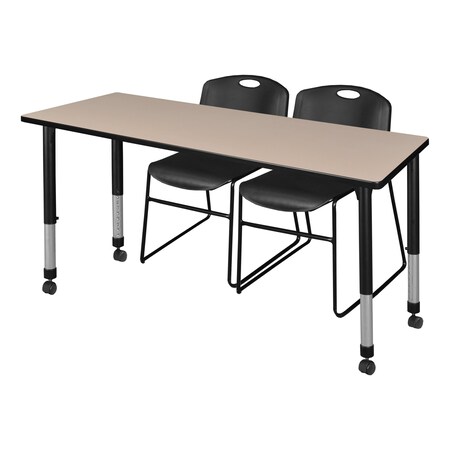 - Mobile Rectangle classroom table and chairs Set includes 72" x 30" table and 2 Black Zeng stack chairs.