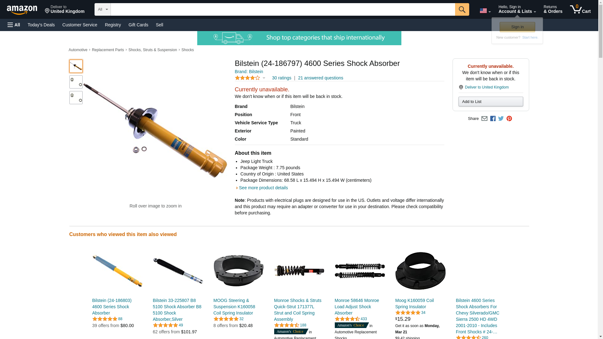 ![]() automotivestuff.com | BILSTEIN-24-186797 | 1 | -2 | 1 | 1 @ $114.53 |