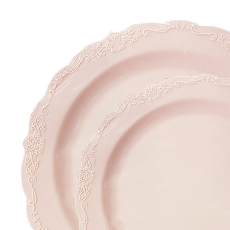 Pink Vintage Round Disposable Plastic Dinnerware Set (120 Dinner Plates+120 Salad Plates),240PK