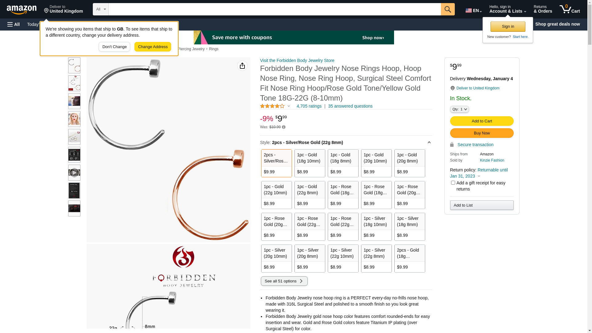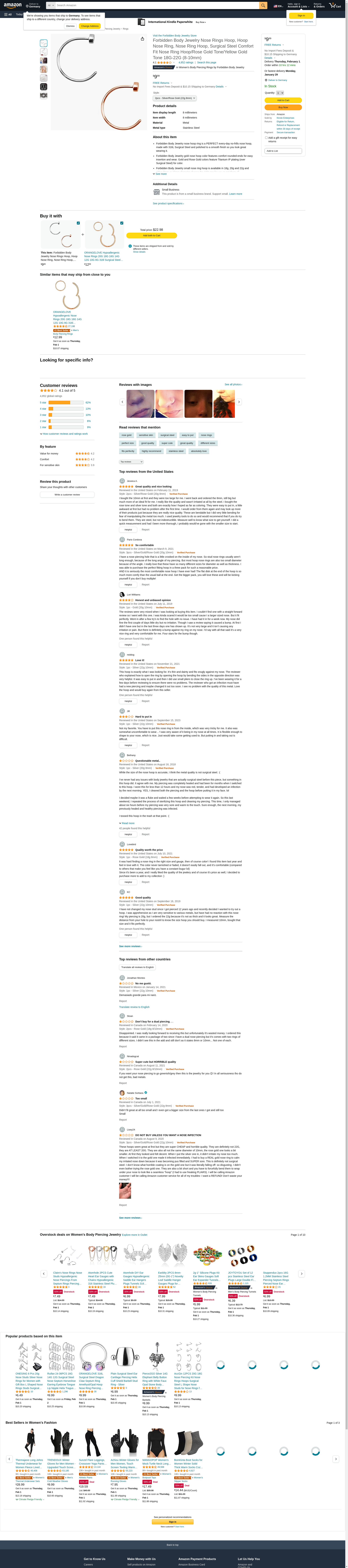 Forbidden Body Jewelry is the premier brand for all of your body piercing needs. We only use hypoallergenic materials in all of our piercing rings and hoops. The seamless design of this nose ring makes it easy to use and comfortable to wear all day. Our US based company ships thousands of body piercing jewelry to Amazon Prime customers around the world. Each piece of body jewelry is a carefully selected and controlled for quality in our warehouse. From the simple and sleek to the bold and sexy, Forbidden Body Jewelry caters to all of your piercing needs. Both men and women trust our company to provide them with safe, affordable and stylish hoops that they can wear on their Nose, Ear, Conch, Cartilage, Septum, Tragus, Rook, Lip, Belly, Nipple, Daith and other body parts. You can reach out to our Customer Happiness Team at any time with questions, concerns and inquiries - we are passionate about helping you LOVE your piercings!
