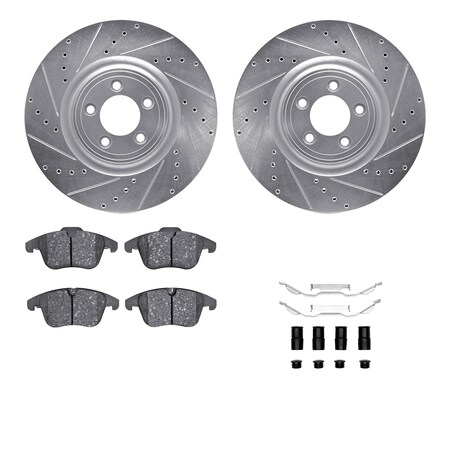7512-20016, Rotors-Drilled and Slotted-Silver w/ 5000 Advanced Brake Pads incl. Hardware, Zinc Coat