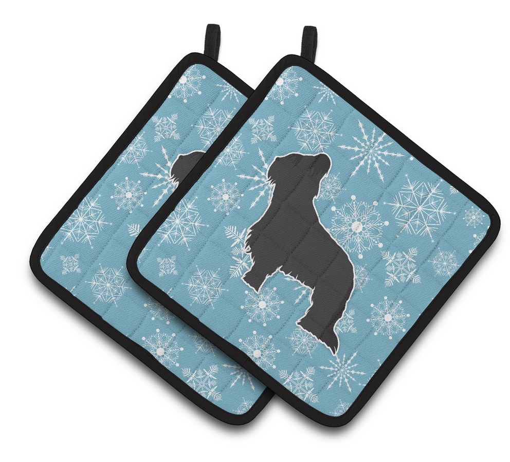 Caroline's Treasures BB3526PTHD Winter Snowflake Briard Pair of Pot Holders Kitchen Heat Resistant Pot Holders Sets Oven Hot Pads for Cooking Baking BBQ, 7 1/2 x 7 1/2