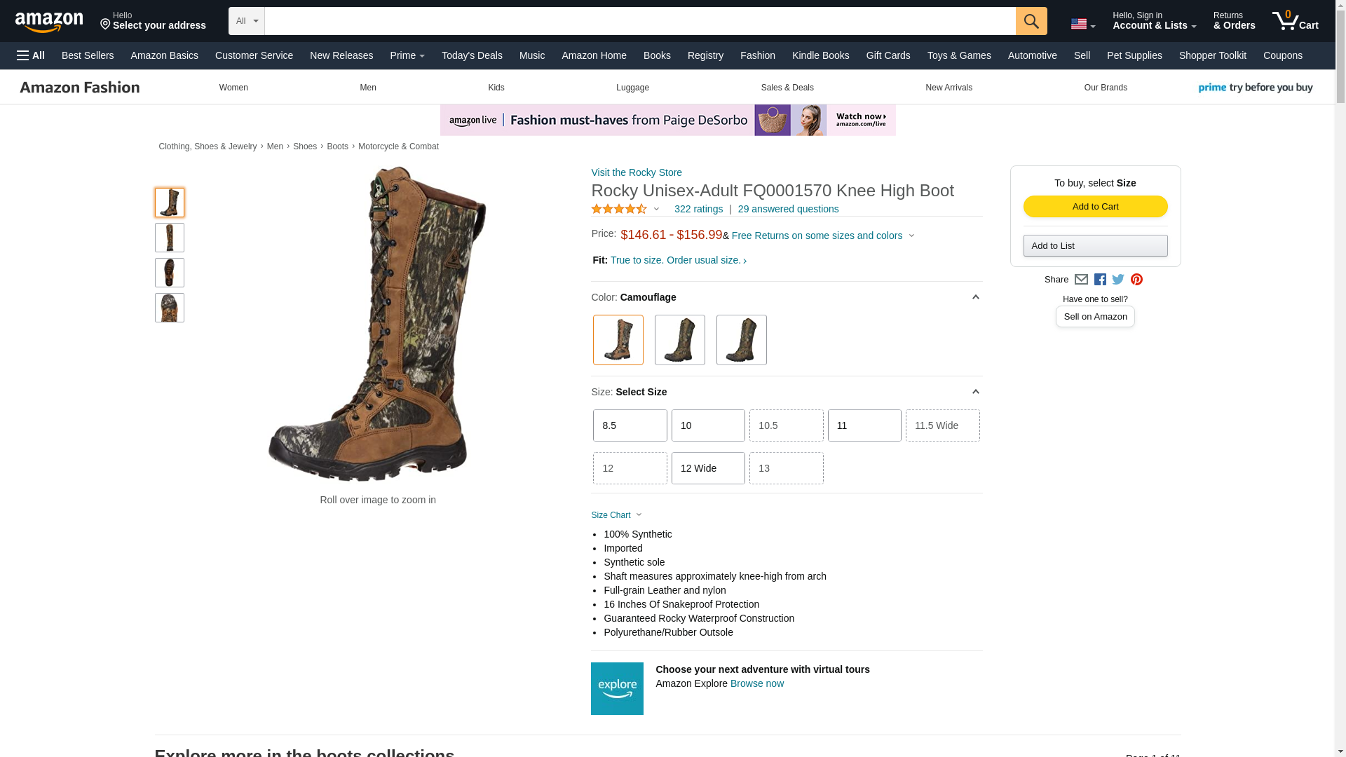 Rocky Men's 16" Prolight Waterproof Snakeproof Hunting Boot Camouflage 11.5 EE US